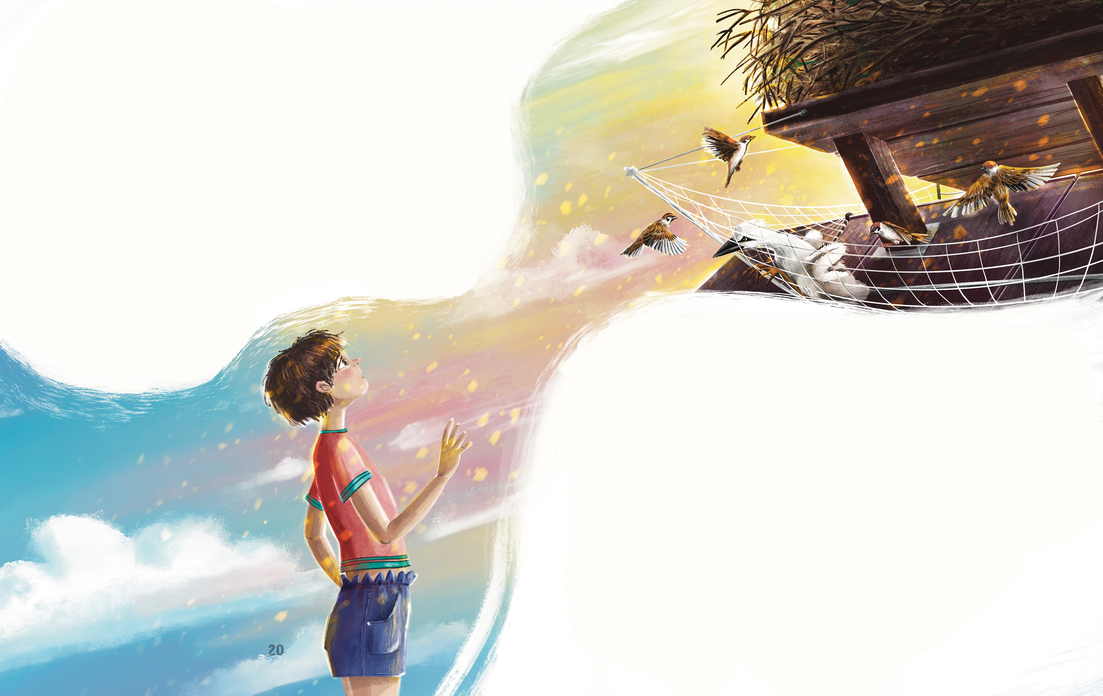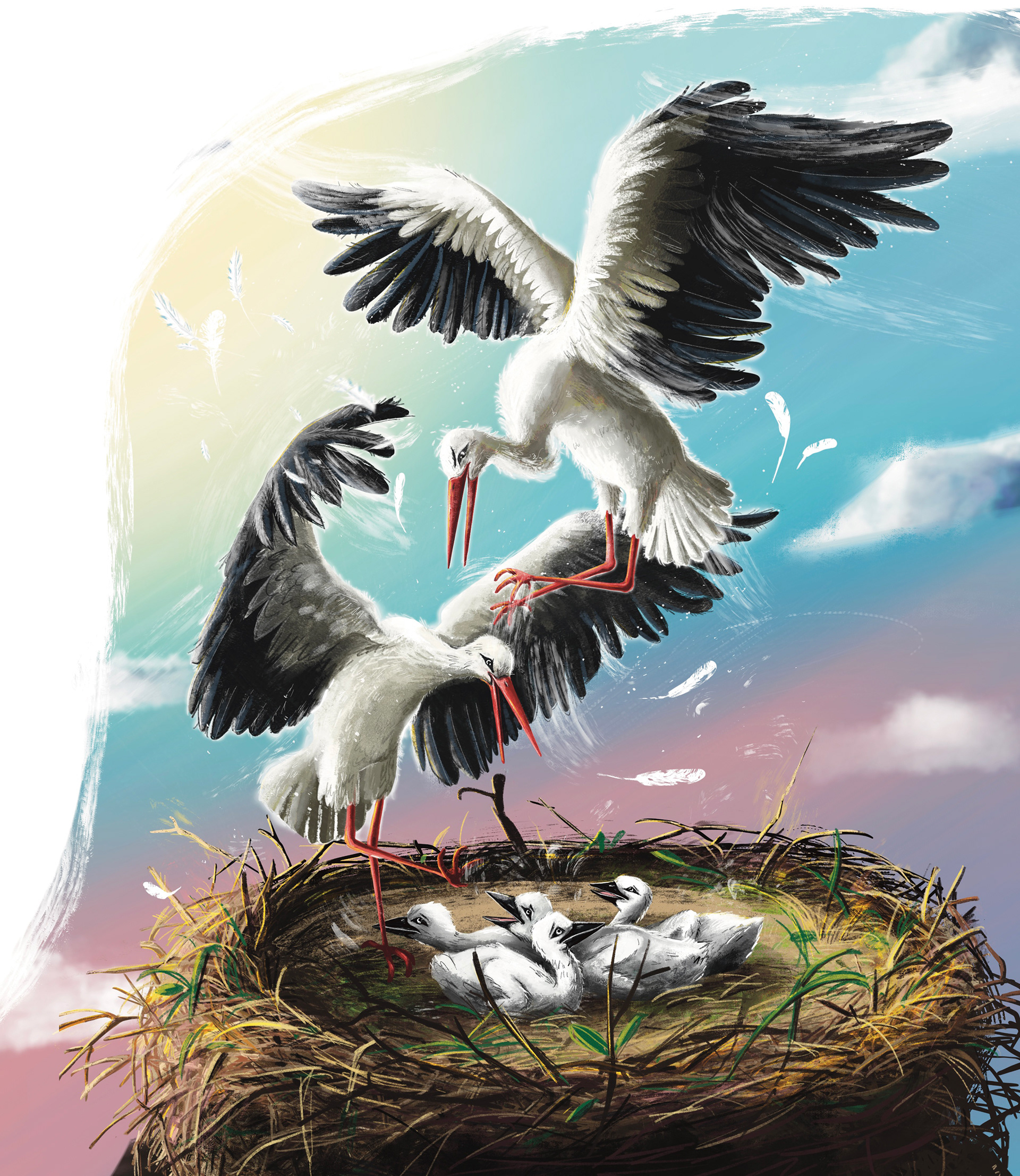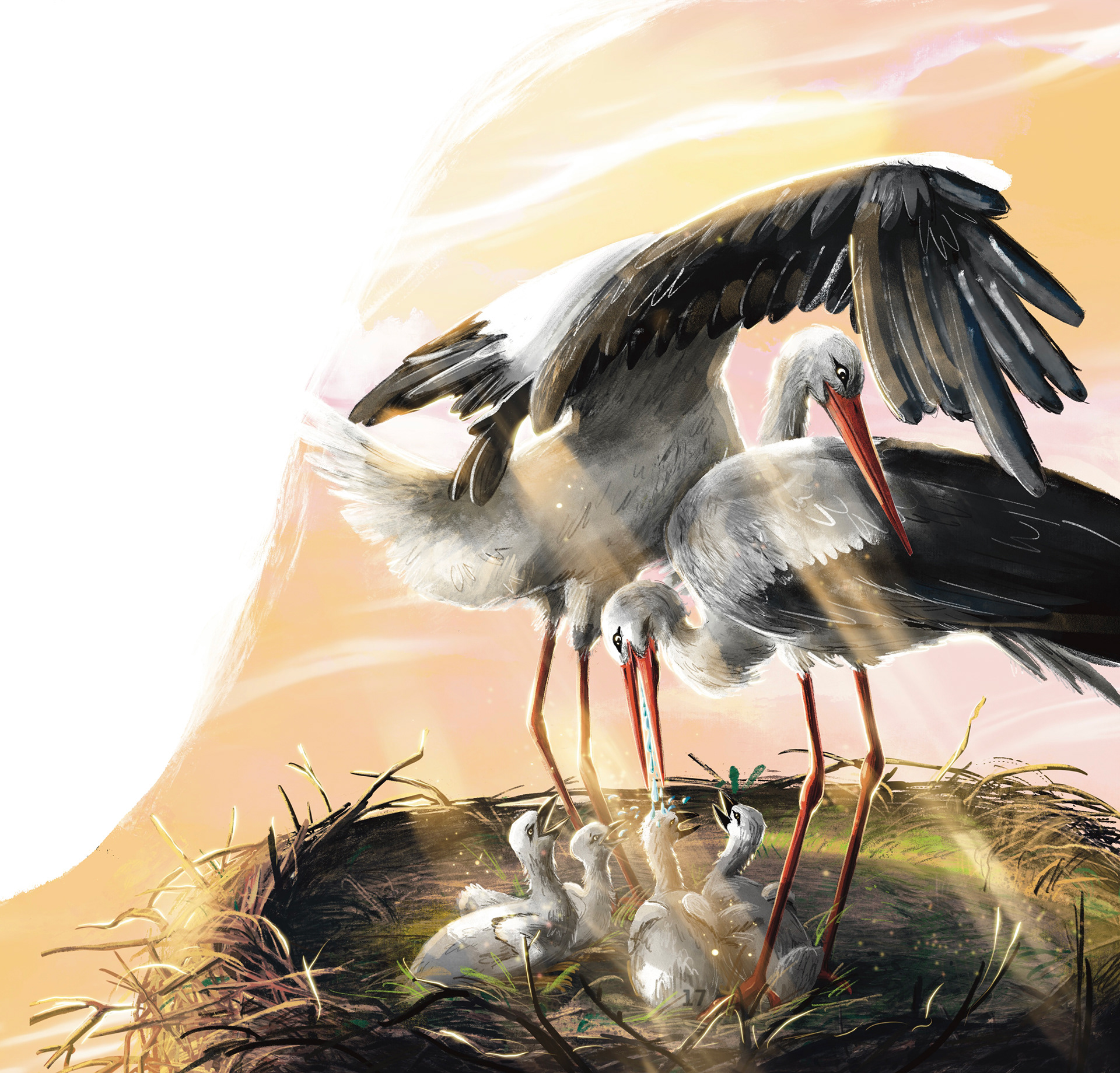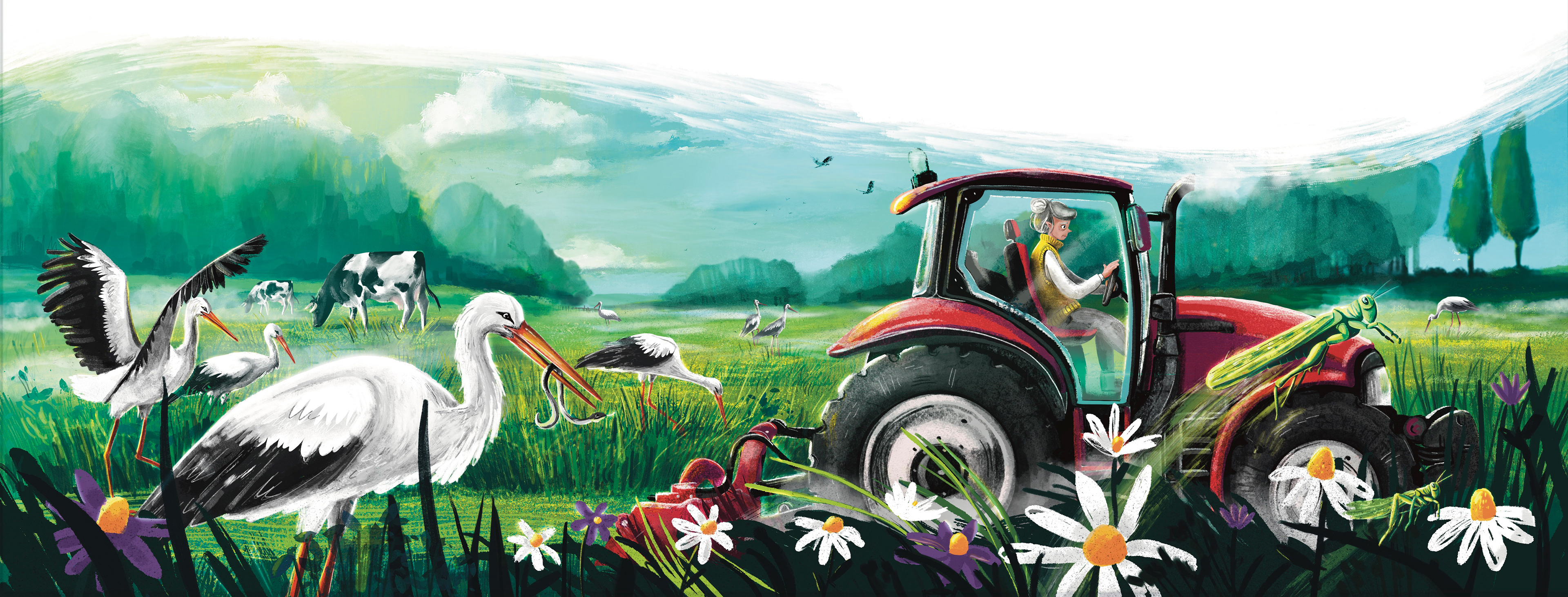 Tym razem Ewa Nowak opowiada historię Adrianka - bociana który wypada z gniazda, ale z pomocą małej dziewczynki wraca do zdrowia i może wyruszyć w dalszą podróż z innymi bocianami.